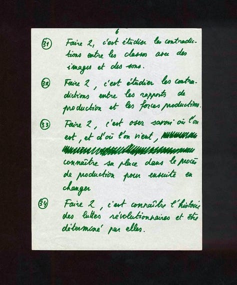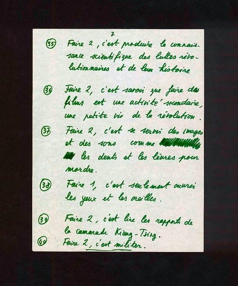 Está no livro Jean-Luc Godard y el grupo Dziga-Vertov, ed. Ramón Font. Agradeço ao Daniel Moreno e ao Bruno Andrade pelo trecho.